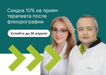 Скидка 10% на прием терапевта после флюорографии до 30 апреля Медклик (общий профиль 18+) Скидка 10% на прием терапевта после флюорографии