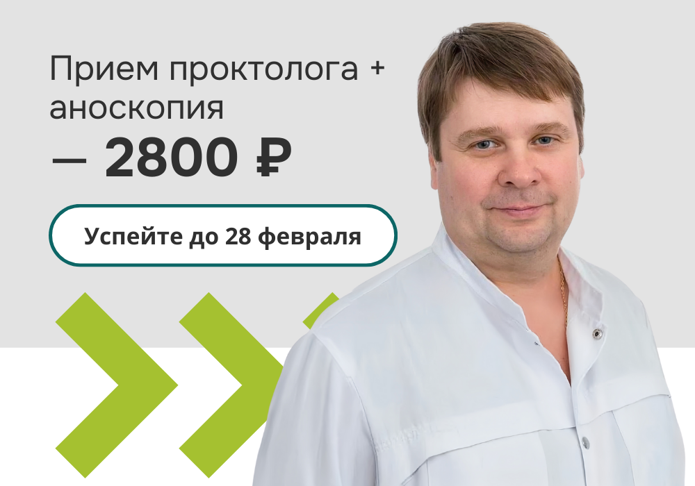 Акция включает консультацию колопроктолога и аноскопию.